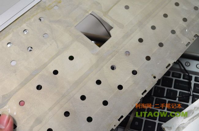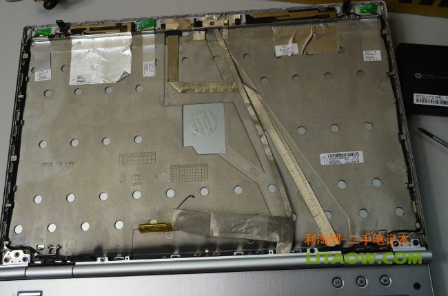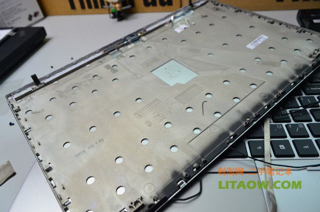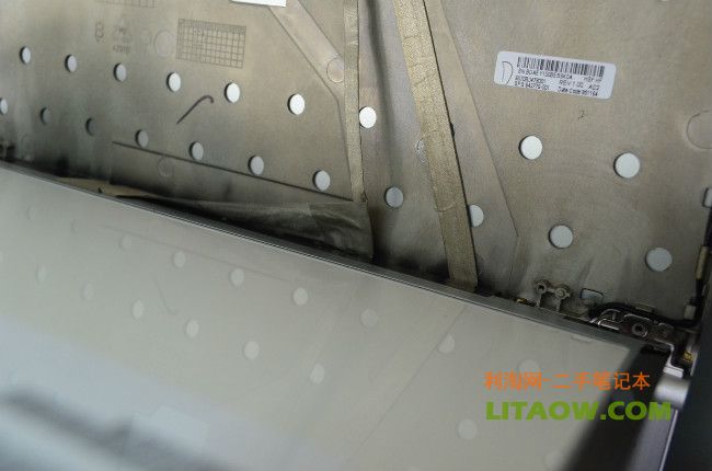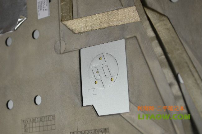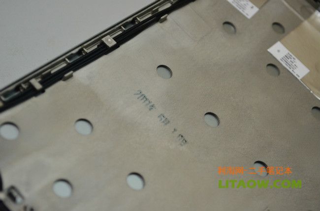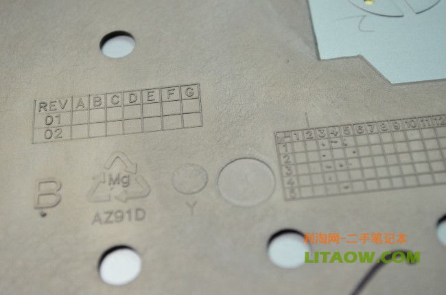 這里就是我們所看到的8460P 8560P筆記本的外殼A面金屬里面的樣子了,里面鎂合金設(shè)計(jì)了很多鏤空的小點(diǎn),主要是為了減輕整體的重量而這樣設(shè)計(jì)的