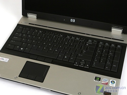 鍵盤采用“DuraKeys”技術(shù),防劃耐用 觸摸板和指點(diǎn)桿的設(shè)計(jì)在8730w上得到了沿用,反應(yīng)靈敏定位準(zhǔn)確。鍵盤上方的無(wú)線開關(guān)、靜音、音量、計(jì)算器等快捷按鈕均采用觸敏控件,靈敏度也很高,使用較為方便。