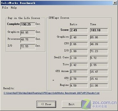 SPECapc for Maya 6.5的參考系統(tǒng)配置為至強(qiáng)2.4Ghz、2GB PC800 ECC RAMBUS內(nèi)存、NVIDIA Quadro FX1000顯卡、40GB ATA硬盤。參考系統(tǒng)在SPECapc for Maya 6.5中的得分為1。 SPECapc for SolidWorks 2007測(cè)試結(jié)果SPECapc for SolidWorks 2007的結(jié)果包括1項(xiàng)I/O測(cè)試、1項(xiàng)CPU測(cè)試和6項(xiàng)顯卡測(cè)試。得分也是和參考測(cè)試系統(tǒng)比較而來(lái),參考系統(tǒng)配置依舊是至強(qiáng)2.4Ghz、2GB PC800 ECC RAMBUS內(nèi)存、NVIDIA Quadro FX1000顯卡、40GB ATA硬盤。參考系統(tǒng)在SPECapc for SolidWorks 2007中得分為1。