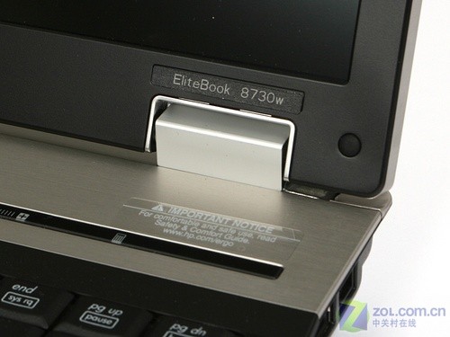 鍵盤上方的觸敏控件 在8730w工作站上為了增強(qiáng)牢固性,屏幕上采用了4點(diǎn)顯示屏鎖閂和帶有強(qiáng)化鋼銷軸的金屬鉸鏈,可以經(jīng)受多次開合。