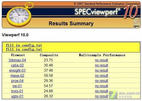 6、專業(yè)性能測(cè)試 SPECviewperf 10結(jié)果 SPECviewperf 10相對(duì)于之前的軟件做了很大的改進(jìn),提供了分辯率選擇,可選1280x1024、1600x1200模式,支持全屏抗鋸齒功能,支持多線程測(cè)試功能。我們采用了1280x1024的測(cè)試模式,未開始抗鋸齒功能。