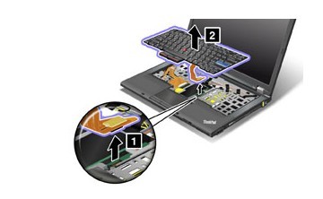 螺絲都擰開之后現(xiàn)在要做的和上面T410一樣的動作那就是將鍵盤往前推,然后呢鍵盤取出來,但是也要注意數(shù)據(jù)線