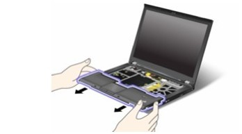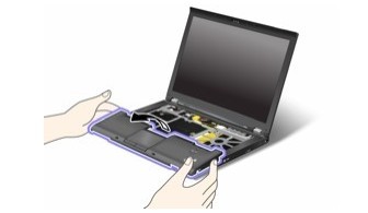 完成上面操作之后,如下圖中將T410S筆記本的掌托翻轉(zhuǎn)過來,對(duì)了我剛剛忘記說你如何拆鍵盤了,和T410差不多的,給大家一個(gè)連接,因?yàn)橐鹫仆械脑捫枰劝焰I盤取出來: