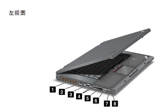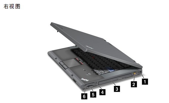 下面我們首先那一臺(tái)W520的筆記本從右側(cè)照片看看所有的硬件和接口有哪些: