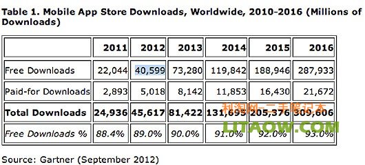 高德納咨詢公司發(fā)布了2012移動應(yīng)用下載報(bào)告