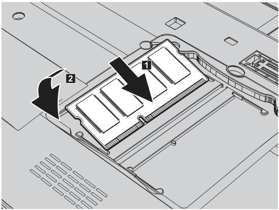 如果要更換的話按照下圖中的方式,,,,,1是先插入內(nèi)存然后按照箭頭方向壓下內(nèi)存就可以了
