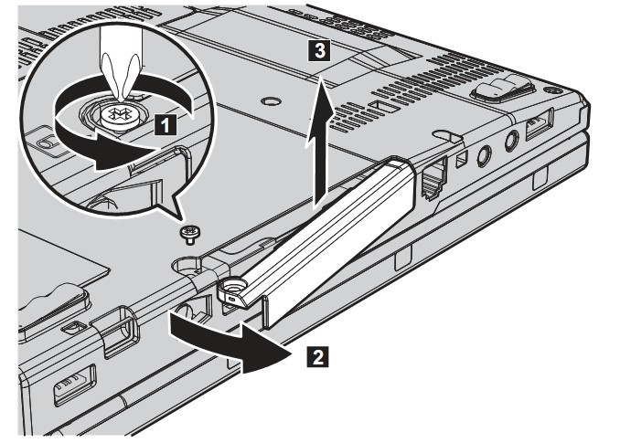 動手之前你還需要將X200內(nèi)置的電池和電源都拔掉,然后看到下圖中硬盤蓋子上面有一個固定的螺絲,先將螺絲擰開后然后取出蓋子: