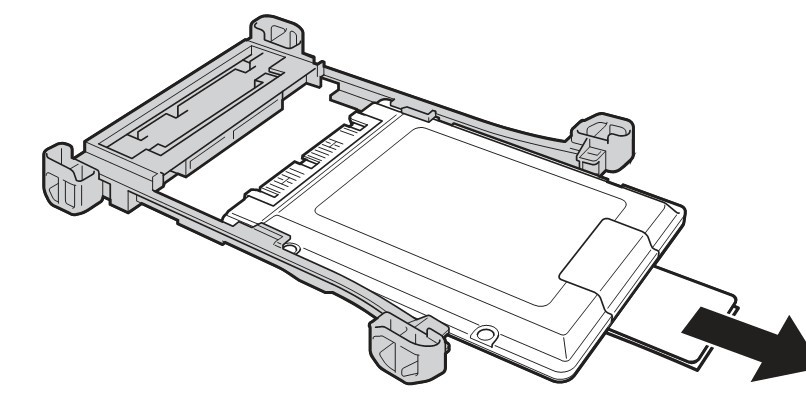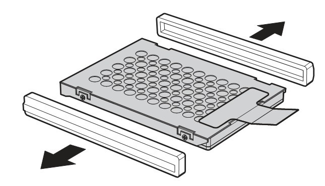 硬盤的兩邊有一個橡膠墊,按照箭頭方向取出來下圖中可以看到還有一個金屬網(wǎng)架,網(wǎng)架上面還有四顆螺絲來固定