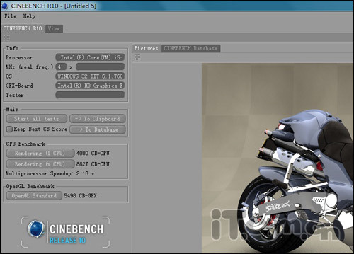 接下來看看這款i5-2520M處理器在CINEBENCH R10的測試成績,單核心4000CB,雙核心8827CB的成績是非常出色的是完全可以滿足用戶對于處理器運算速度的日常使用,并且再一次表明了新平臺 下的這顆Core i5-2520M處理器的性能,整機的表現(xiàn)絕對是可圈可點的。