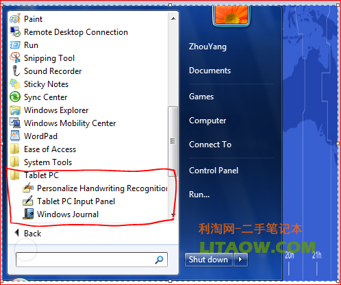 在安裝好Win7系統(tǒng)后會(huì)在屏幕的左側(cè)默認(rèn)隱藏一個(gè)Tablet PC的輸入面板,所有的Tablet PC 的設(shè)置以及項(xiàng)目的打開可以在開始菜單的附件以及控制面板里面找到,如下圖: