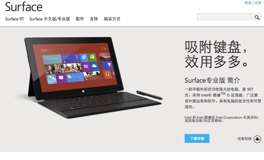 微軟Surface Pro將在下周登陸國(guó)內(nèi)市場(chǎng)抗衡蘋果ipad電腦!