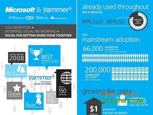 微軟公司又有新動(dòng)作了,日前有報(bào)道說微軟計(jì)劃要拓展其社交業(yè)務(wù)。果不其然,近日微軟宣布收購(gòu)了一家專門為企業(yè)商務(wù)類領(lǐng)域做社交服務(wù)的公司,這家公司名叫Yammer??赡苤肋@家公司的朋友很少,因?yàn)樗拿鎸?duì)的客戶比較專業(yè)性領(lǐng)域,需要該企業(yè)的企業(yè)郵箱才能用此社交網(wǎng)絡(luò),它是在2008年創(chuàng)立的,到目前已經(jīng)有很多世界五百?gòu)?qiáng)企業(yè)在使用它提交的社交服務(wù)。這次收購(gòu)耗資12億美元,之后Yammer就成為了微軟旗下Office部門的一部分,但依然獨(dú)立的運(yùn)行,提供獨(dú)立的服務(wù),現(xiàn)在的客戶約有500萬,微軟表示之后將會(huì)把它跟現(xiàn)在的SKYPE,OFFICE等融合在一起提供服務(wù),加強(qiáng)其綜合服務(wù)實(shí)力和社交能力。