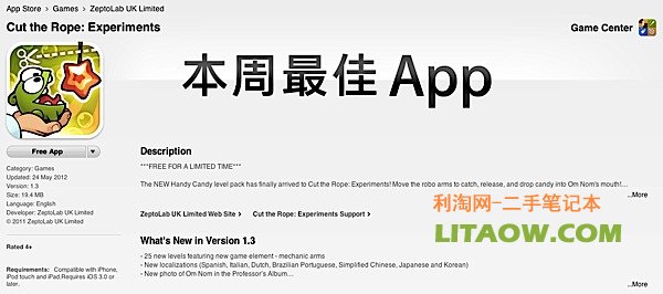 蘋果最近越來越多的對其APP應用高店進行改革,諸如編編輯精選,精品推薦,最佳排名,下載最多,熱門介紹及新品推薦等諸多方式,力圖給全球用戶尋找到更多精品應用并帶來更多種的方式體驗APP應用商店,給應用商及用戶帶來諸多便利。今日蘋果在國外推客上,宣布新增一個應用分類“本周最佳APP”,并提供免費下載,這周的最佳是切害繩子游戲,不知道大家玩沒有,沒有玩過的現(xiàn)在快去應用商店免費下載吧,機會難得哦。