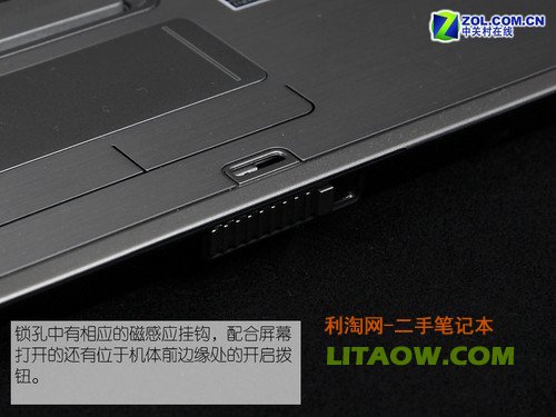 2730p并沒有采用傳統(tǒng)的鎖扣式設計,但是可旋轉的屏幕又需要一種穩(wěn)固的扣合方式,惠普便又拿出了其一貫使用的“磁石魔法”。在屏幕頂蓋中鎖孔中2730p藏有一顆強力磁石,當頂蓋與底座貼近時鐵質掛鉤會從底座鎖孔內被吸出并自然掛在頂蓋鎖孔內,而依靠機體底部的播鈕又可以輕易的將掛鉤放下打開屏幕頂蓋。很巧妙的設計,不是嗎?