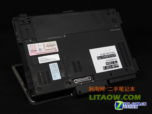 黑色的機體底部摸上去極具手感,雖說類膚漆的耐久性仍值得商榷,但是在新買來的時候的確能給用戶物有所值的感覺。直觀上講,2730p的底部設計給人感覺十分復雜,其中硬件升級區(qū)被覆蓋在一大塊金屬蓋板之下。