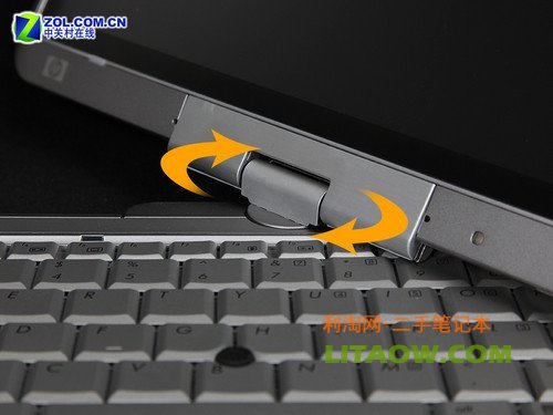 HP EliteBook 2730p能夠旋轉屏幕,這也是這款價值18000元左右的產品最容易被發(fā)現(xiàn)的特點。實際上,旋轉屏幕的意圖在于將傳統(tǒng)筆記本改變?yōu)槠桨咫娔X后更加方便手寫輸入。只不過EliteBook 2730p的屏幕旋轉方式為單向旋轉,單柱式的屏幕轉軸也會一定程度的凸出于機體。