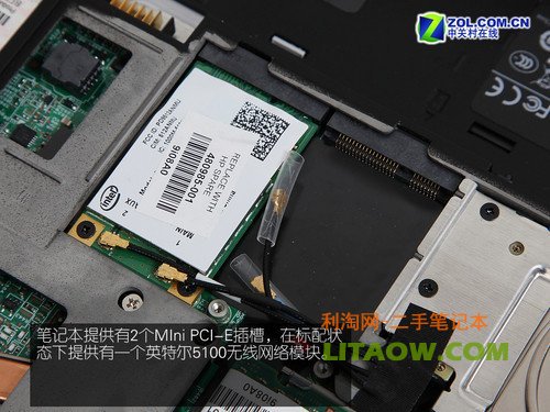 2個Mini PCI-E插槽中已經安裝有一塊英特爾5100無線網絡模塊,而另一個空著的插槽應當就是為3G模塊所準備的了吧。如果這次我拿到的是最高配置版的2730p相信就可以為大家展示3G網絡模塊的樣子。還有就是3G所需的SIM卡插也如同以往一般的被放在了電池模組下方。