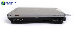 僅從機體左側來看,除了手寫筆的收納倉、可充電式USB2.0接口以及ExpressCard/34插槽之外還分布有無線網絡開關與惠普信息中心的激活按鍵。換句話說,解放了鍵盤操作面卻苦了擴展接口的平臺。另一側相對好些,分布有IEEE1394接口、音頻輸入輸出接口、SD卡讀卡器、USB2.0接口以及筆記本電腦鎖。