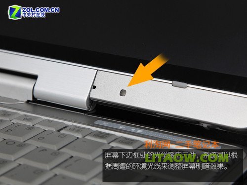 盡管顯示效果相對滯后,但是HP EliteBook 2730p屏幕卻能夠盡其所能的保護用戶雙眼與節(jié)省電量。位于屏幕下邊框處,我發(fā)現(xiàn)了一顆能夠隨環(huán)境光線明暗變化調節(jié)屏幕亮度的光敏電阻。