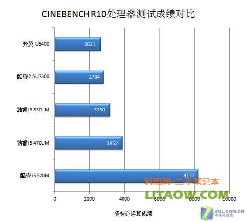 為了幫助大家了解其性能定位,我們列出之前評(píng)測(cè)的過(guò)的一些數(shù)據(jù):奔騰雙核U5400雙核成績(jī)?yōu)?631 CB-CPU,酷睿2雙核SU7300雙核成績(jī)?yōu)?784 CB-CPU,酷睿i3 330UM雙核成績(jī)?yōu)?150 CB-CPU,酷睿i5 520M雙核成績(jī)?yōu)?177 CB-CPU,如圖所示。