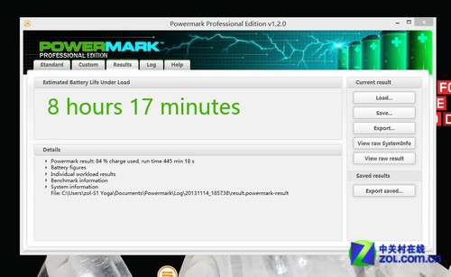 接下來(lái)我們現(xiàn)在來(lái)測(cè)試下Thinkpad S1 YOGA的整體電池續(xù)航時(shí)間評(píng)測(cè), 續(xù)航時(shí)間是很多外出以及需要移動(dòng)辦公朋友非常關(guān)注的一個(gè)熱點(diǎn),我們使用了PowerMark來(lái)測(cè)試,這款軟件和很多著名的評(píng)測(cè)軟件一樣有很準(zhǔn)確的測(cè)試數(shù)據(jù), FutureMark是這款軟件的開(kāi)發(fā)商, 其中就包含了正常的四種常見(jiàn)用戶使用情況模擬,比如上網(wǎng)看網(wǎng)頁(yè),以及工作的文檔, 以及3D游戲等等,最大可能的接近使用者的實(shí)際情況。