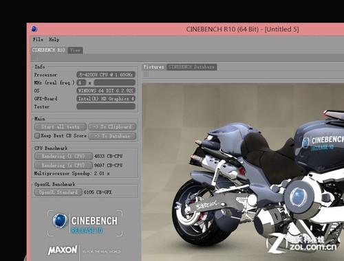 現(xiàn)在來(lái)看看CINEBENCH R10對(duì)酷睿i5 4200U的CPU性能評(píng)分效果,其中單核獲得4833分,雙核模式下9697分,多線程性能還是非常不錯(cuò)的。