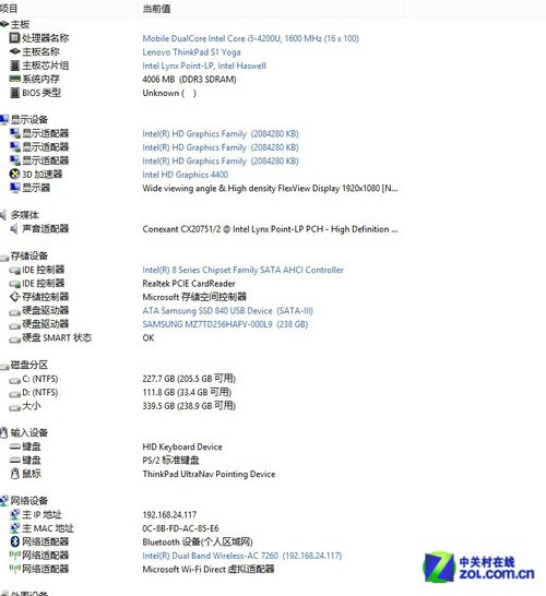在硬件配置上這次筆者拿到的這臺(tái)二手S1 YOGA Thinkpad筆記本電腦使用了22nm工藝的英特爾四代I5 4200U處理器, 是一個(gè)雙核四線程基于Haswell打造的處理器,另外硬盤則使用了一個(gè)三星256G SSD固態(tài)硬盤,內(nèi)存是計(jì)算機(jī)板載的4GB DDR3高速顆粒, 顯卡的話就是處理器的自帶顯示核心顯卡是HD 4400, 根據(jù)用戶的使用情況以及內(nèi)存大小最大可以擴(kuò)展到2G顯存。