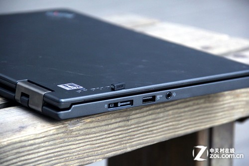 如果說(shuō)傳統(tǒng)筆記本有很多多的視頻輸出口,那么這臺(tái)二手S1 YOGA已經(jīng)將VGA等口去掉了, 下圖是左側(cè)的接口細(xì)節(jié)照片, 分別是電源口, One-link擴(kuò)展塢接口,以及一個(gè)USB 3.0口,和一個(gè)耳麥一體接口, 這個(gè)One Link的擴(kuò)展塢的話可以去官方了解下,功能很強(qiáng)大能擴(kuò)展非常多的原生接口出來(lái),比如高清輸出比如眾多的USB口等等。